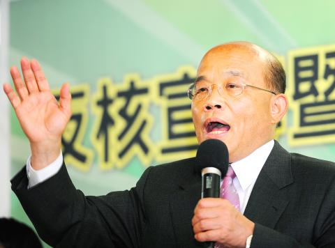 Democratic Progressive Party (DPP) Chairman Su Tseng-chang (蘇貞昌) yesterday repeated his call for President Ma Ying-jeou (馬英九) to “fulfil the people’s expectations” by issuing a direct executive order to suspend construction of the Fourth Nuclear Power Plant in New Tapei City’s (新北市) Gongliao District (貢寮).