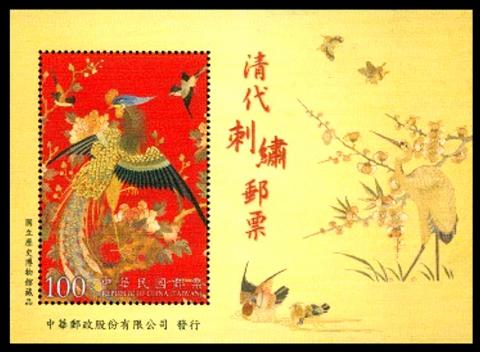 Chunghwa Post is to unveil a new set of stamps today featuring embroidery work from China’s Qing Dynasty collected by the National Museum of History.