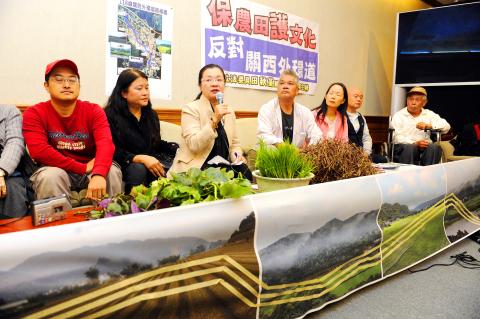 “The scenic view and agricultural products are important to Guansi, but the planned highway would require the expropriation of 153 plots of farmland with a total area of 8.9 hectares, and would effect at least five rated tourist attractions in the town,” Chen Yu-chan (陳玉蟾), a Guansi resident and a member of the Meili Village Environmental Protection Union, told the press conference.