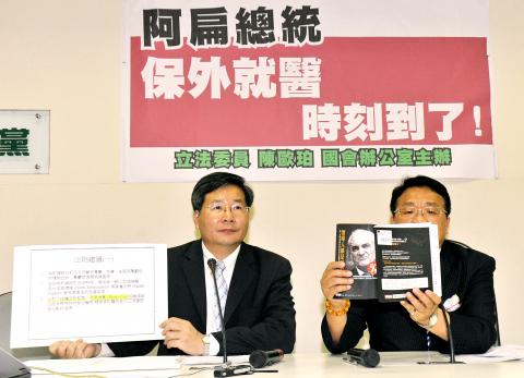 DPP Legislator Chen Ting-fei (陳亭妃) said it was very clear that the medical report says Chen should be cared for at home and that he should not go back to the prison, but the ministry does not seem to comprehend the report.