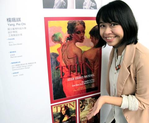 Another top 10 design came from Yang Pei-chi (楊珮祺), who submitted a series of posters on the theme of “Size Zero Models.”