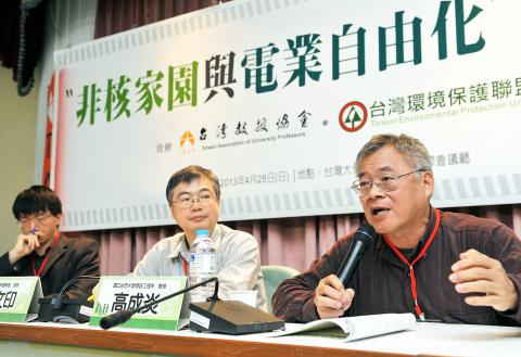 The seminar, organized by Taiwan Association of University Professors and Taiwan Environmental Protection Union, was held to discuss the liberalization of the energy industry and the use of nuclear energy following the recent release of several white papers by the Executive Yuan.