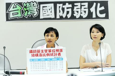 DPP Legislator Chen Ting-fei (陳亭妃) said the ratio of conscripted soldiers and voluntary soldiers was 47.5 to 52.5 in 2007 when the DPP was in power, but the ratio has dropped dramatically since then and is now 37 to 63.