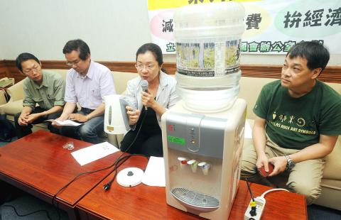 The public should avoid using hot-and-cold-water dispensers, to save electricity and improve the quality of drinking water, Democratic Progressive Party Legislator Tien Chiu-chin (田秋堇) and environmentalists said yesterday.