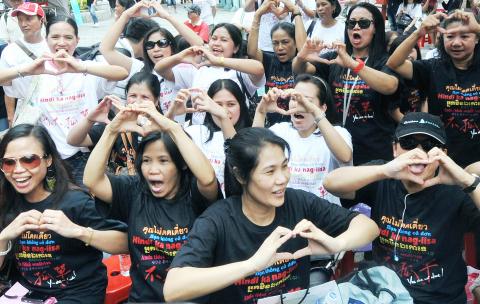 Hundreds of Taiwanese and Filipinos yesterday enjoyed musical performances at the “Friendly Taiwan” event, which was initiated by several celebrities to demonstrate the nation’s friendship and appreciation for Filipino workers.