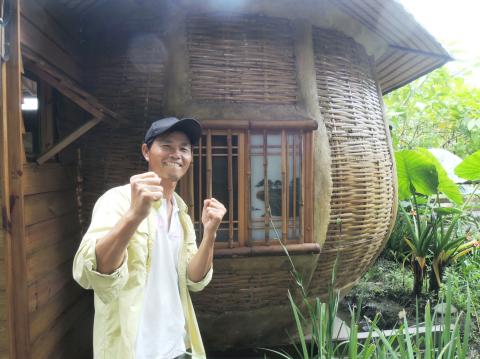 Once the manager of a hair salon chain in Taipei, a man in his 40s from Changhua County’s Tianwei Township (田尾) overcame his mid-life crisis by constructing an agriculture-themed hostel that offers backpackers a taste of farm life and a special night in traditional bamboo-built granaries.