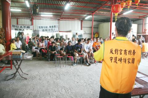 However, the village was quiet yesterday after the county government made a last-minute decision last week to relocate the festival to the village of Dapu (大埔) about 3km away, knowing that farmers opposed to the industrial park were likely to demonstrate at the event.