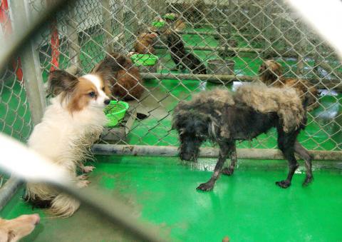 Office section chief Chen Wei-lin (陳威霖) said that the office had received tips from people working near the breeding facility, adding that when officials arrived on the scene on Thursday last week to confiscate the animals, they found that of the 155 dogs originally listed at the facility, seven had died, and the rest were in bad shape.