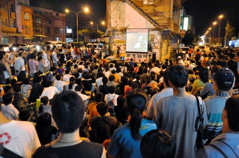Police in Dapu Borough (大埔), Miaoli Country, on Saturday night fined the organizers of a street premiere of director Chan Ching-lin’s (詹慶臨) film, A Breath from the Bottom (狀況排除), for “disturbing public order” by holding the screening at the site of the controversial demolition of residences in the borough earlier this month.