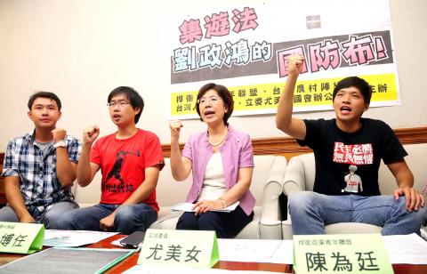 “Liu Cheng-hung, what are you afraid of? Who grants you the power to void the people’s right to assembly?” Youth Alliance for Miaoli spokesman Chen Wei-ting (陳為廷) said during a press conference.