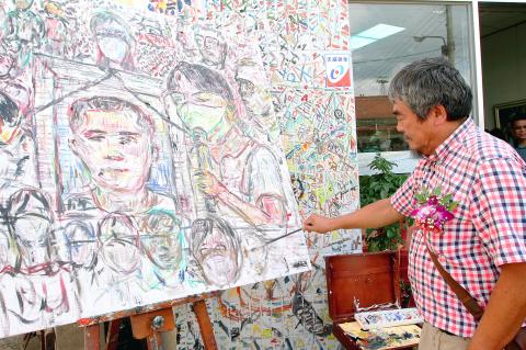 A noted Taiwanese painter is honoring Hung Tzu-yung (洪慈庸), sister of the late army corporal Hung Chung-chiu (洪仲丘), by completing an oil painting portrait of her and putting it on public display at the launch of his art gallery in Changhua City.