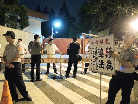 Following the death of a resident of Dapu Borough (大埔), whose house was demolished by the Miaoli County authorities two months ago, protesters staged surprise protests outside the Executive Yuan and the presidential residence late on Wednesday, leading to minor clashes with police.