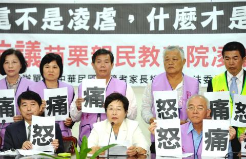 Democratic Progressive Party Legislator Chen Chieh-ju (陳節如) accompanied PAPID at a press conference at the Legislature Yuan, where the footage was played, showing the superintendent kicking, strangling, spanking and hitting the residents.