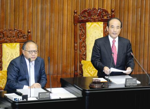 KMT lawmakers countered the motion, criticizing DPP Chairman Su Tseng-chang (蘇貞昌) and the party’s “confrontational” style in the legislature.