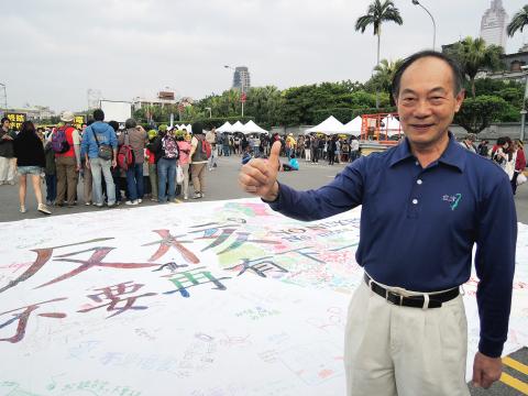 Bookstore owner Wu Cheng-hsan (吳成三), 72, was overjoyed on Thursday last week — Double Ten National Day — to see an anti-nuclear flag raised by activists in a demonstration held in front of the Legislative Yuan in Taipei.