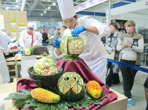 After winning a fruit and vegetable carving competition in South Korea last year, 23-year-old Yang Po-wei (楊柏偉) once again brought home an impressive victory after winning a gold and a silver at the second European Fruit and Vegetable Carving Championship earlier this month.