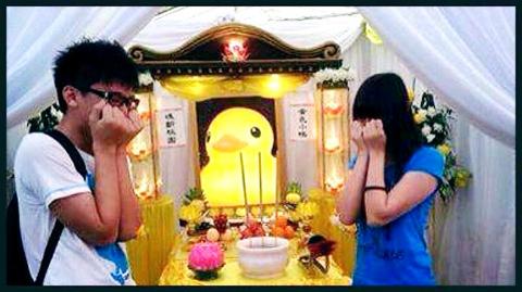 News of the deflated duck prompted a fervent response among the nation’s netizens, with Taoyuan County Councilor Chan Chiang-tsun (詹江村) even suggesting that Wu lead county government officials in observing a 10-second silence in tribute to the deflated duck, a request declined by the commissioner.