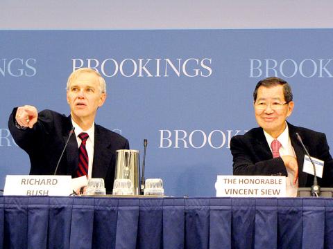 Former vice president Vincent Siew (蕭萬長) told a packed audience at the Brookings Institution in Washington on Wednesday that the fundamental purpose of his current visit to the US was to “bring Taiwan back to Washington’s attention.”