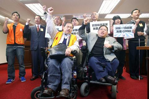 The League of Welfare Organizations for the Disabled and 10 other groups representing people with disabilities yesterday urged the legislature to adopt the Convention on the Rights of Persons with Disabilities (CRPD), which was adopted by the UN General Assembly in 2006 and entered into force in 2008.