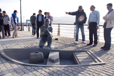 Tamsui District Administrator Tsai Ye-wei (蔡葉偉) said the sculpture was erected on the spot where Mackay first landed in Tamsui as part of the first stage of the Danshui Art Gallery, a public area designed as a display and exchange platform for artists.