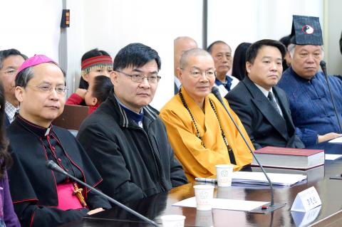 “We are here to change the stereotypical image that all Christians are against legalizing same-sex marriage,” Chu Yueh-hsin (朱約信), a deacon at Presbyterian Church of Taiwan, told a news conference at the Legislative Yuan in Taipei.