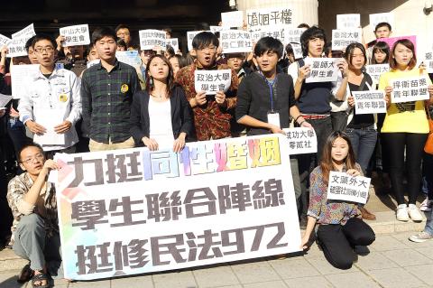Dozens of university student associations and student organizations across the country yesterday announced the establishment of an alliance to support the legalization of same-sex marriage, saying that the time is ripe for such a change to eliminate discrimination based on sexual orientation.