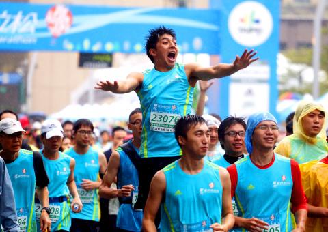 Taiwan’s top male runner was Ho Chin-ping (何盡平) — the fastest Taiwanese man last year — at 2 hours, 23 minutes, 33 seconds, while Hsu Yu-fang (許玉芳) was the first Taiwanese woman to cross the finish line at 2 hours, 48 minutes, 17 seconds.