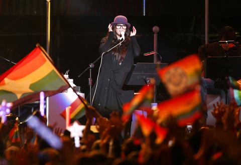 The star performed more than 20 songs for her fans, many of whom held rainbow flags, a symbol of the lesbian, gay, bisexual and transgender community.