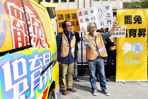 Lin Feng-jeng (林峰正), former executive director of the Judicial Reform Foundation, said the alliance would mobilize all the volunteers it can to scour the constituency’s six districts — Sanjhih (三芝), Shihmen (石門), Tamsui (淡水), Bali (八里), Linkou (林口) and Taishan (泰山) — to collect signatures from the required 13 percent of the electorate.