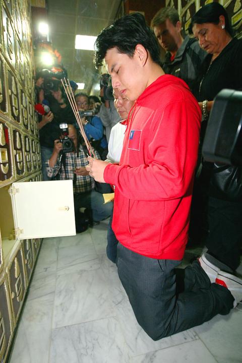 An 18-year-old teenager at the center of a high-profile tug-of-war custody battle between his Taiwanese and Brazilian relatives more than a decade ago broke down in tears yesterday when he visited the columbarium where his father’s ashes are stored.