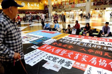The Taiwan Friends of Uighurs (TFU) has joined the cause voiced by the World Uyghur Congress (WUC) in calling for an end to the Chinese government maltreatment of Uighurs by staging a sit-in demonstration at Taipei Main Station.