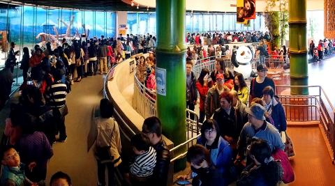 Taipei Zoo spokesman Chao Ming-chieh (趙明杰) said more than 1,500 visitors queued overnight on Friday, twice the average number of visitors to the hall each weekday since Yuan Zai made her first public appearance.
