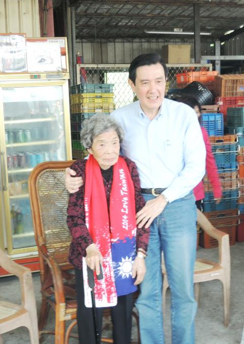 President Ma Ying-jeou (馬英九) yesterday visited former “comfort woman” Cheng Chen Tao (鄭陳桃) during a trip to Pingtung County, and said that Japanese Prime Minister Shinzo Abe’s recent visit to the Yasukuni Shrine was regretful.