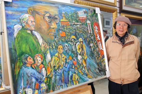 Determined to change that, 79-year-old painter Tung Jih-fu (董日福), who witnessed the bloody crackdown, decided to use the incident as an inspiration for his work and display his paintings this year to mark the 67th anniversary of the incident.