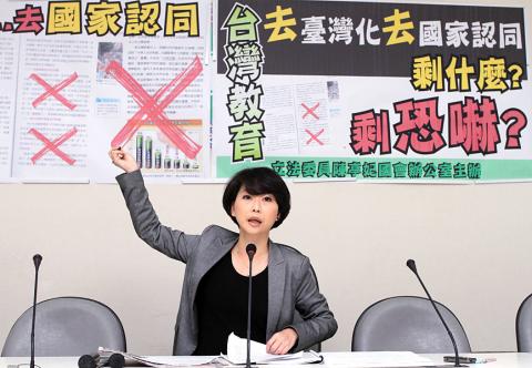 DPP Legislator Chen Ting-fei (陳亭妃) demanded that the ministry halt the policy, saying that the curriculum adjustment “has been more of a ‘de-Japanization’ and ‘de-Taiwanization’ than anything else.”