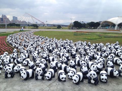 Four hundred paper pandas invaded the Dajia Riverside Park yesterday morning, before being joined by 200 more as they marched to Daan Forest Park in the afternoon.