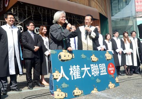 Independent candidate Neil Peng (馮光遠), an award-winning screenplay writer, and lawyer Wellington Koo (顧立雄), who is vying for the Democratic Progressive Party’s (DPP) nomination, announced the establishment of what they called the “submarine legal team” of almost 30 lawyers yesterday.