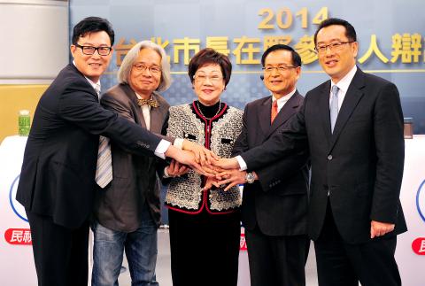 The debate, organized by the Taiwan Association of University Professors and televised by Formosa TV, gathered all four Democratic Progressive Party (DPP) contenders and independent Neil Peng (馮光遠), an award-winning screenplay writer, following a similar debate between DPP-only aspirants on March 9.