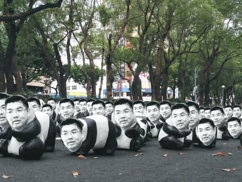 With potential candidates for the Nov. 29 seven-in-one elections going into campaign mode, Internet celebrity Lucifer Chu (朱學恒) has drawn inspiration from the recent outdoor exhibition of papier-mache pandas by French artist Paulo Grangeon in Taipei, releasing a series of doctored images poking fun at some of the contenders.