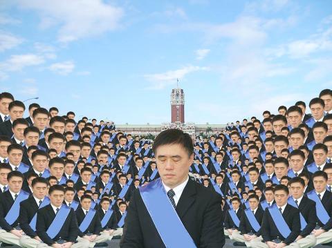 Another photomontage which featured hundreds of doppelgangers of Hau sitting cross-legged in front of the Presidential Office Building in Taipei also attracted applause from netizens.