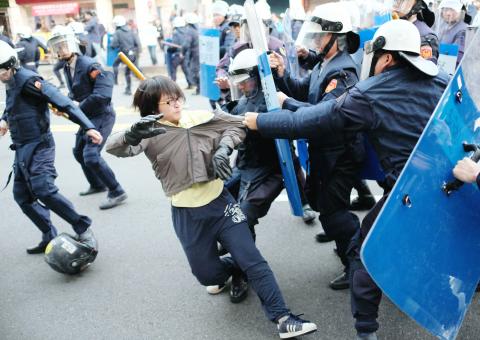 Unlike in the previous case, riot police were dispatched to evict the intruders this time, and by 5am yesterday, the Executive Yuan was cleared of demonstrators.