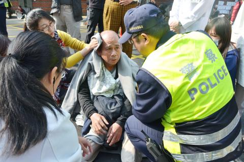 Meanwhile, at about 8:50am yesterday, a middle-aged man surnamed Chiang (江) attempted to commit suicide outside the legislature by pouring gasoline on himself.