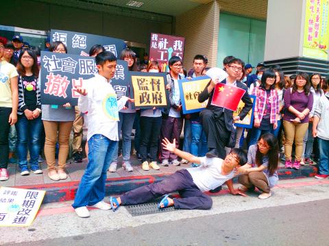 The party also asked that no timetable be set for the passage of the pact and that a document request committee be established to investigate the Executive Yuan’s order of a police crackdown on students in the Executive Yuan early on Monday morning.