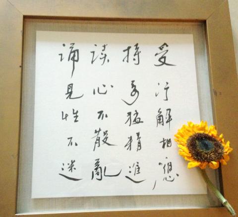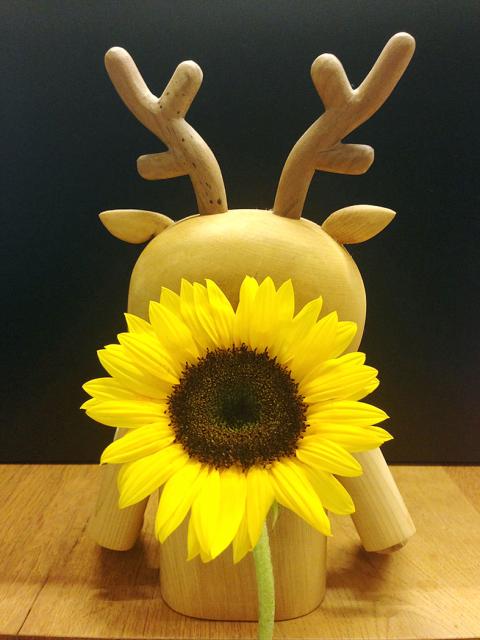 Xue Xue Institute founder Lilin Hsu (徐莉玲) contributed a photograph of a wooden deer carving partially concealed by a sunflower.