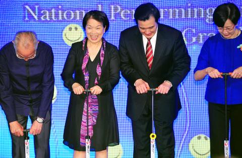 The opening ceremony for the National Center for Performing Arts in Taipei took an unexpected twist on Monday when President Ma Ying-jeou (馬英九) was invited to join other dignitaries in inflating balloons with bicycle pumps.