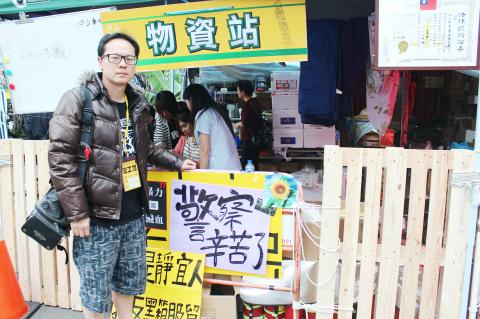 One of these depots, run by the 37-year-old Tung Te-yu (董德堉), stood out from the rest, because it was the only one established and operated entirely by volunteers with no connection to the student-led protesters.