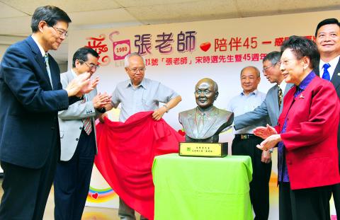 To celebrate the organization’s 45th anniversary, the foundation yesterday unveiled a statue of Sung Shih-hsuan (宋時選), who was listed first on the rotation list of the telephone counselors when the foundation was set up in 1969.