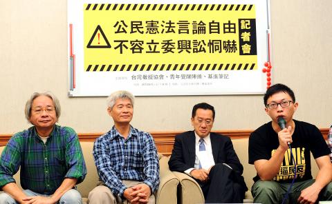 The five held a press conference in Taipei yesterday, accompanied by lawyer Wellington Koo (顧立雄) and author Neil Peng (馮光遠), to criticize Lu Hsueh-chang’s action and clarify their appeals.