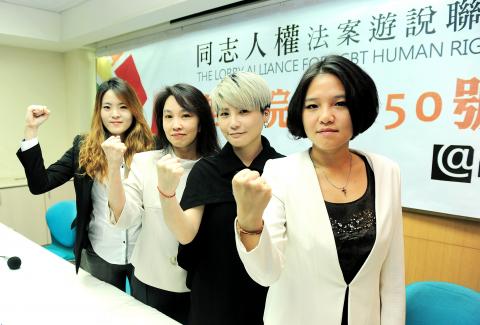 Wang, the openly lesbian granddaughter of United Daily News Group founder Wang Tih-wu (王惕吾), said the alliance would lobby for and promote bills guaranteeing gender equality, and encourage LGBTs to come out.