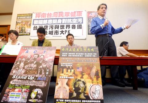 Alliance founder and Changhua Christian Hospital gynecologist Yeh Guang-peng (葉光芃) said he and the Changhua Medical Alliance for Public Affairs had analyzed air quality reports published by the WHO, and discovered that the annual average of PM10 (fine particles in the air smaller than 10 micrometers in size) concentration in Taiwan was as high as 54 micrograms per cubic meter.